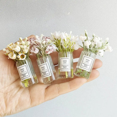 1/12 Scale Dollhouse Miniature Glass Vase Flower, Tiny Artificial Plants, Mini Colorful Floral Décor, Dollhouse Accessories, Home Scene