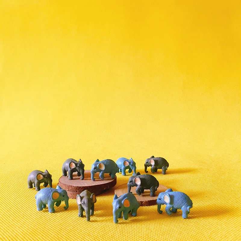 Bring a touch of charm to your creative projects with these Mini Elephant Figurines — a delightful mix of blue and grey miniature elephants made of durable PVC. 🐘