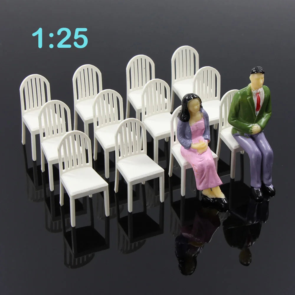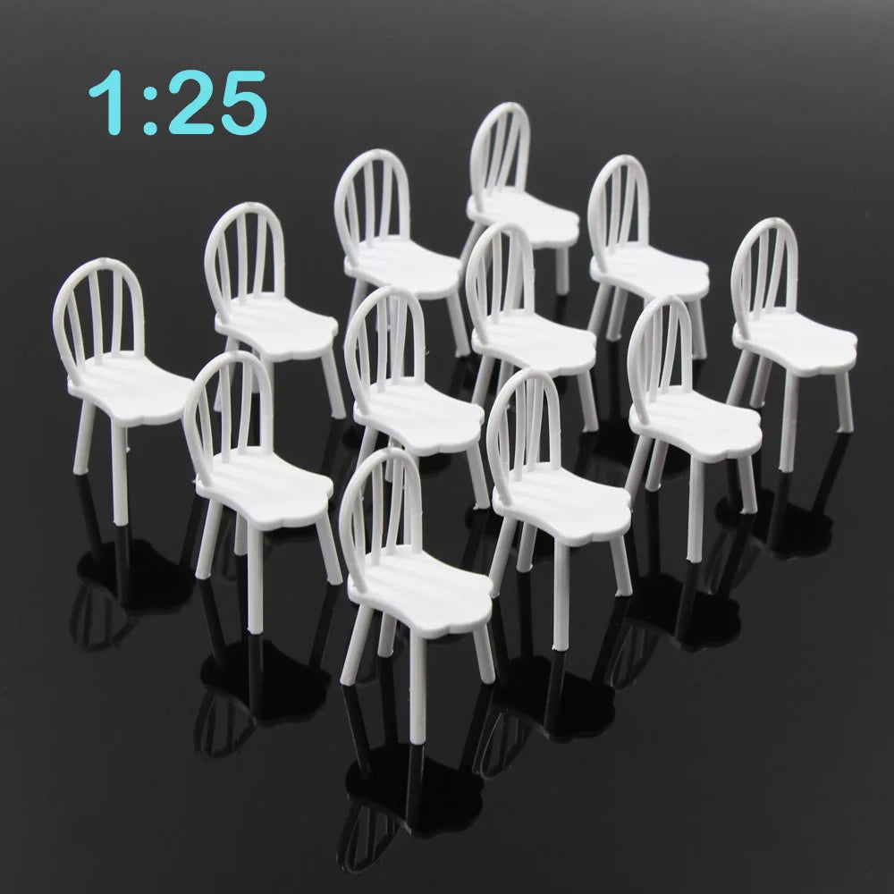 12pcs 1:25 G Scale Miniature Unpainted White Chairs Model Furniture for Railway Diorama Scene Layout DIY Craft