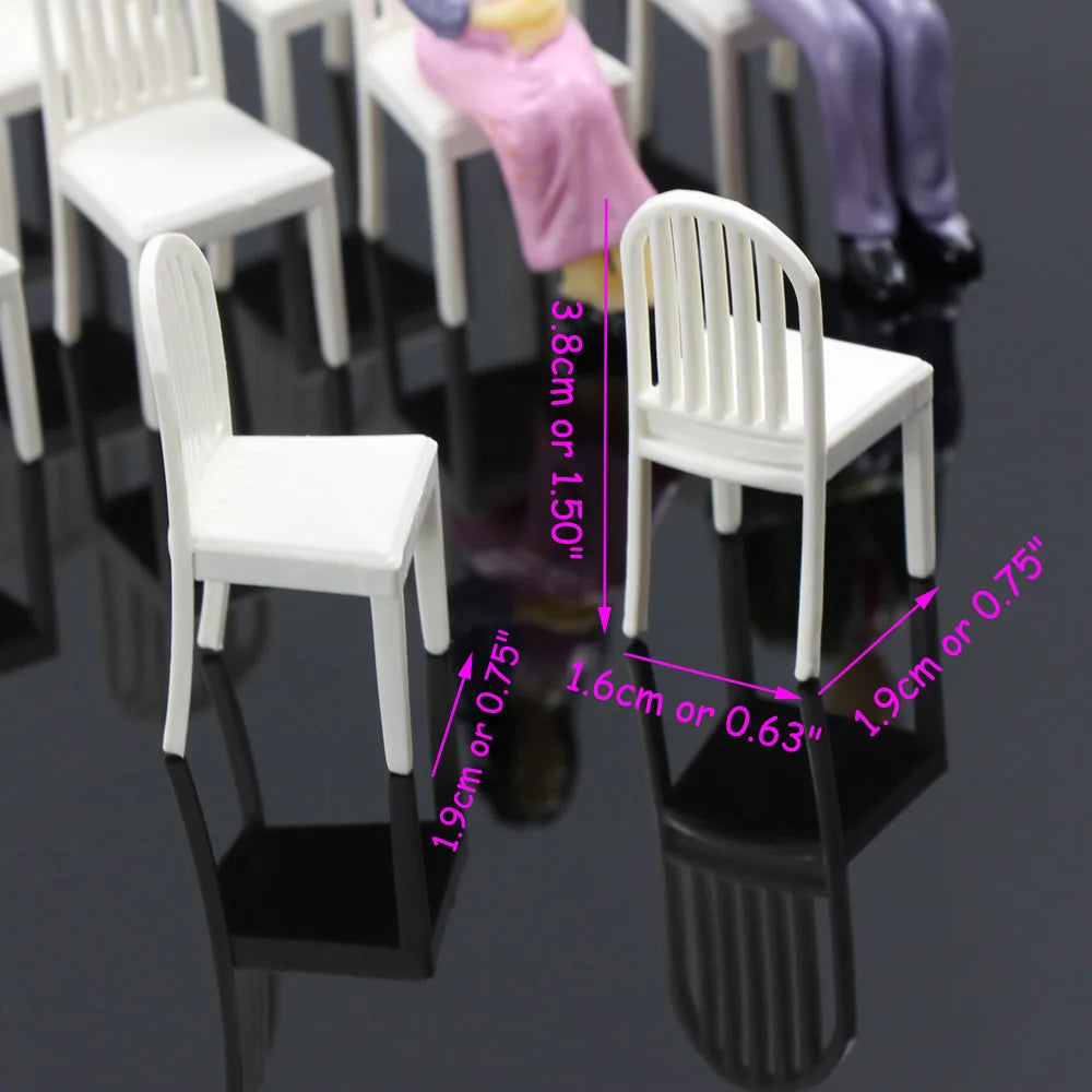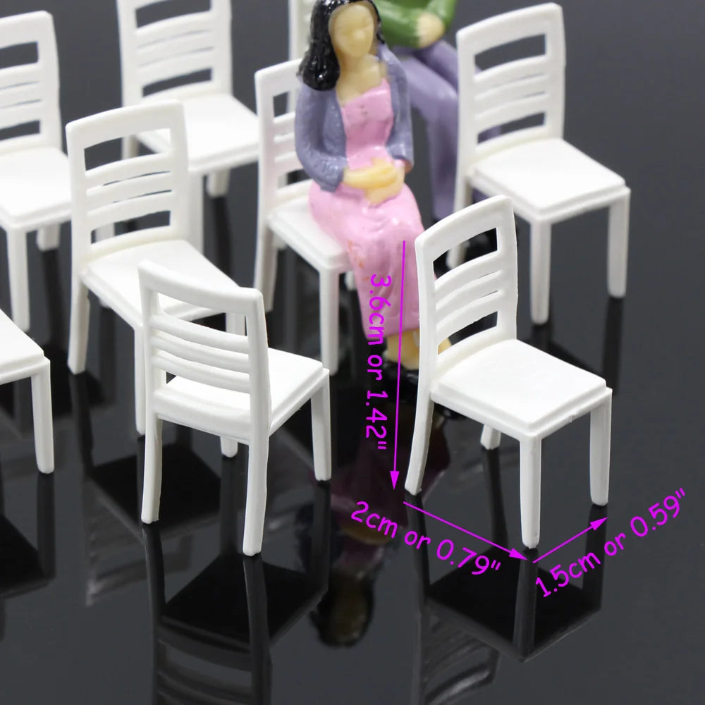 These chairs are made from durable plastic and come unpainted, allowing hobbyists and modelers to customize them with their own colors and finishes. Perfect for indoor scenes such as parks, cafes, platforms, living rooms, or leisure areas in miniature worlds.