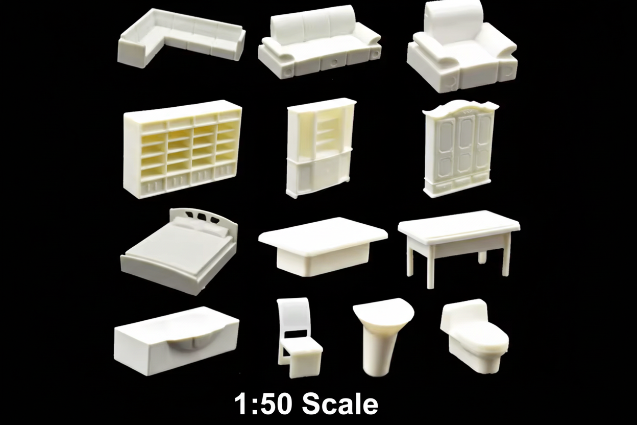 All pieces are supplied in plain white plastic, allowing hobbyists, students, and model makers to paint, customize, and arrange them according to project needs.