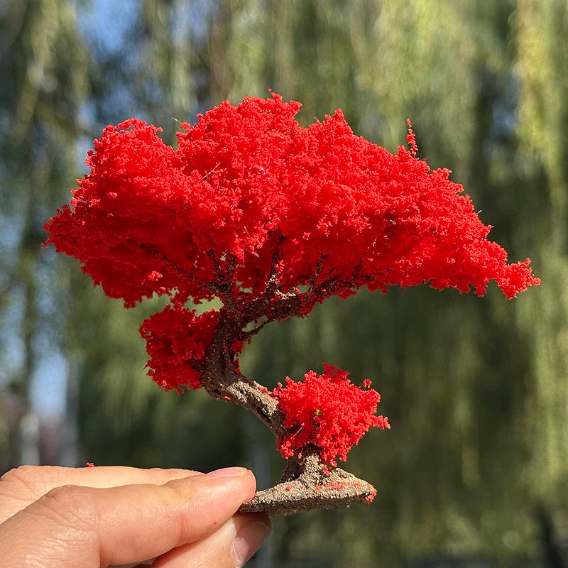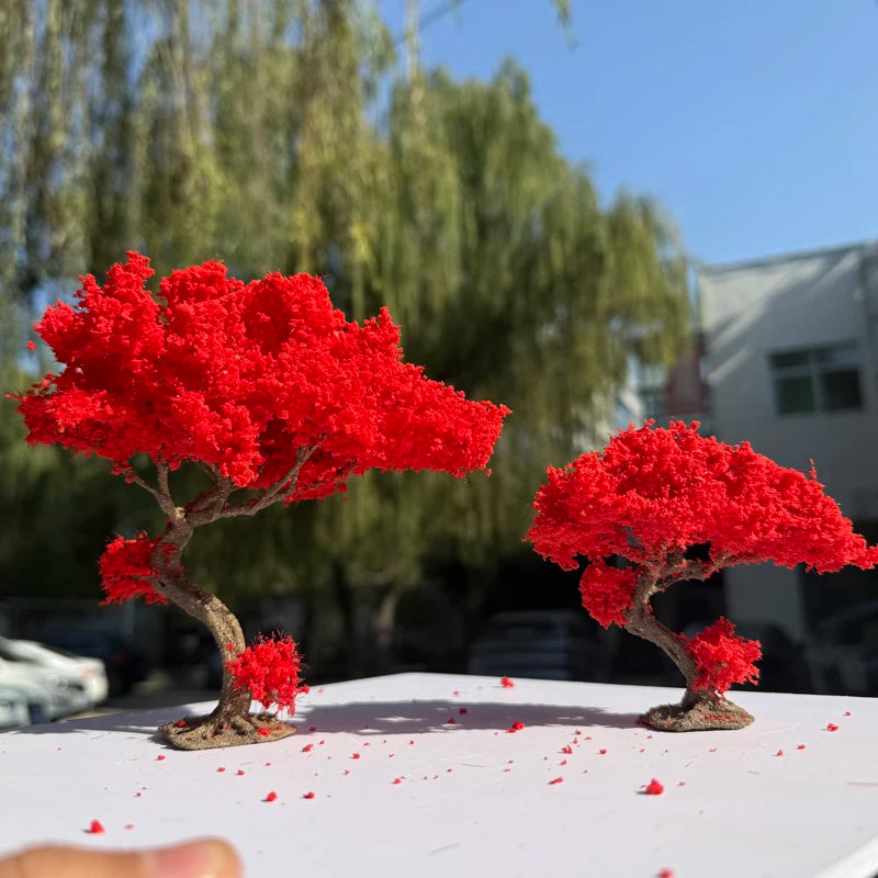 This miniature red model tree is designed for dioramas, architectural models, sand tables, dollhouse scenes, and creative DIY projects.