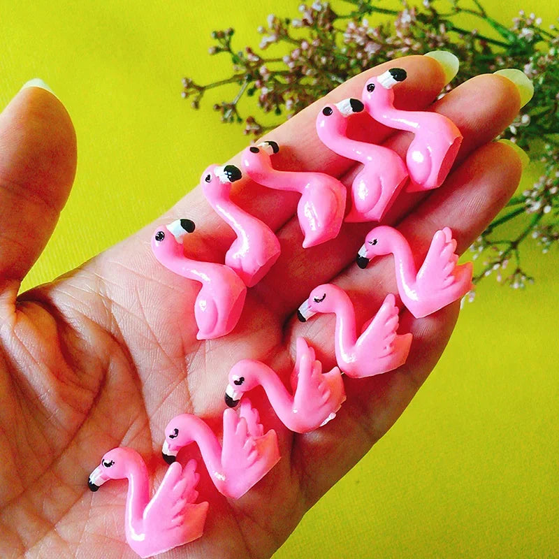 🦩 Set of 10 Mini Flamingos – Includes 10 cute resin flamingos in assorted poses.