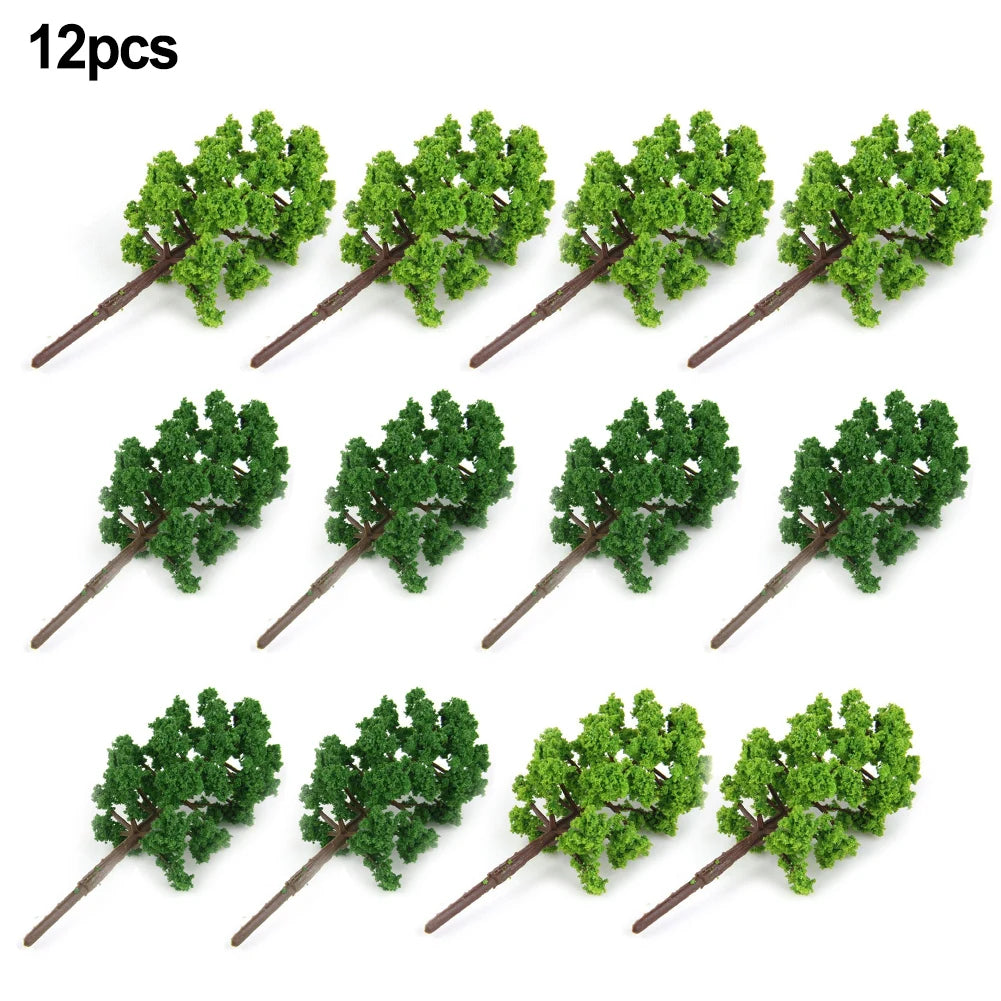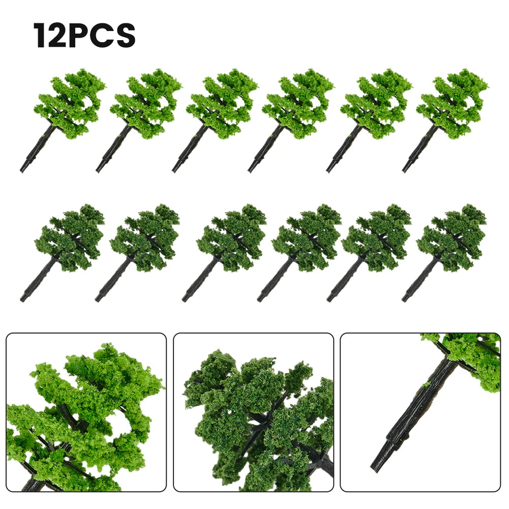 Includes 6 dark green and 6 light green trees for balanced, natural-looking scenery.