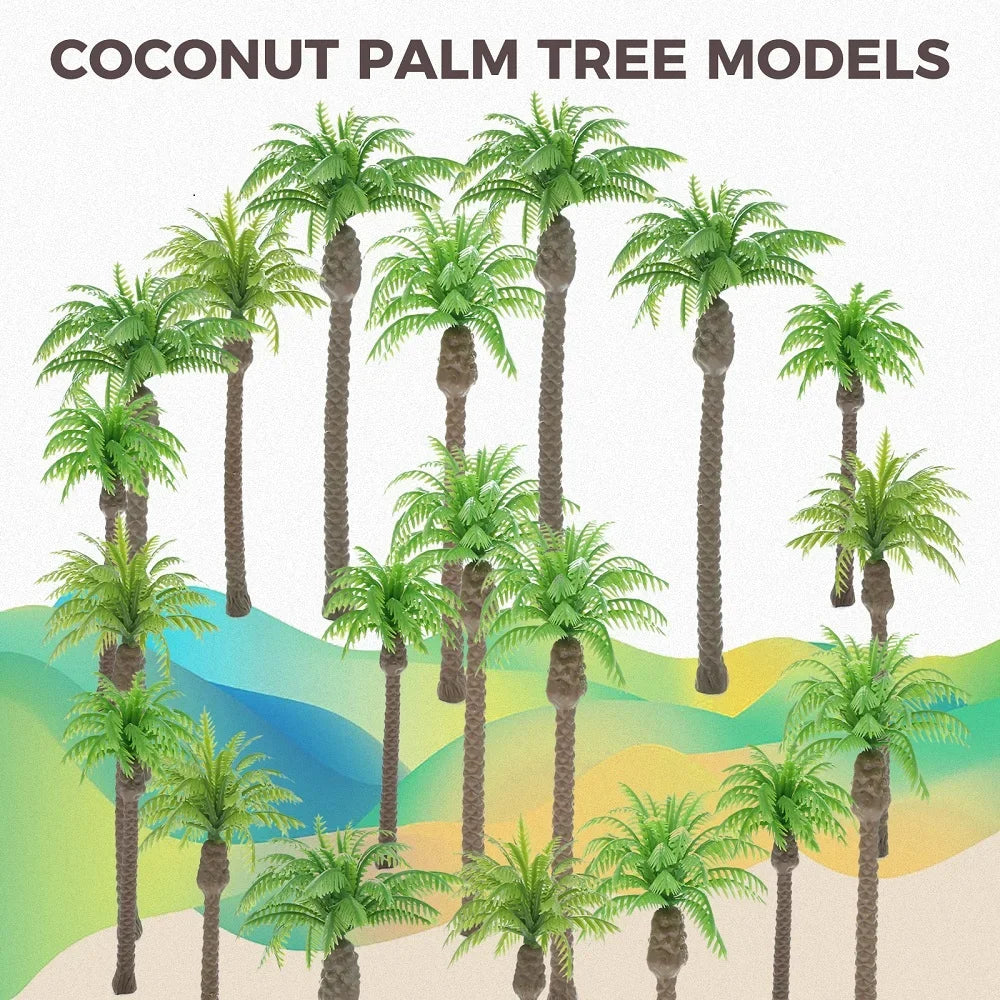Bring your miniature scenes to life with this set of 20 coconut palm model trees, perfect for dioramas, railway layouts, architecture models, sand tables, and micro landscapes. Each palm tree features a detailed resin trunk and natural green foliage for a realistic tropical look.