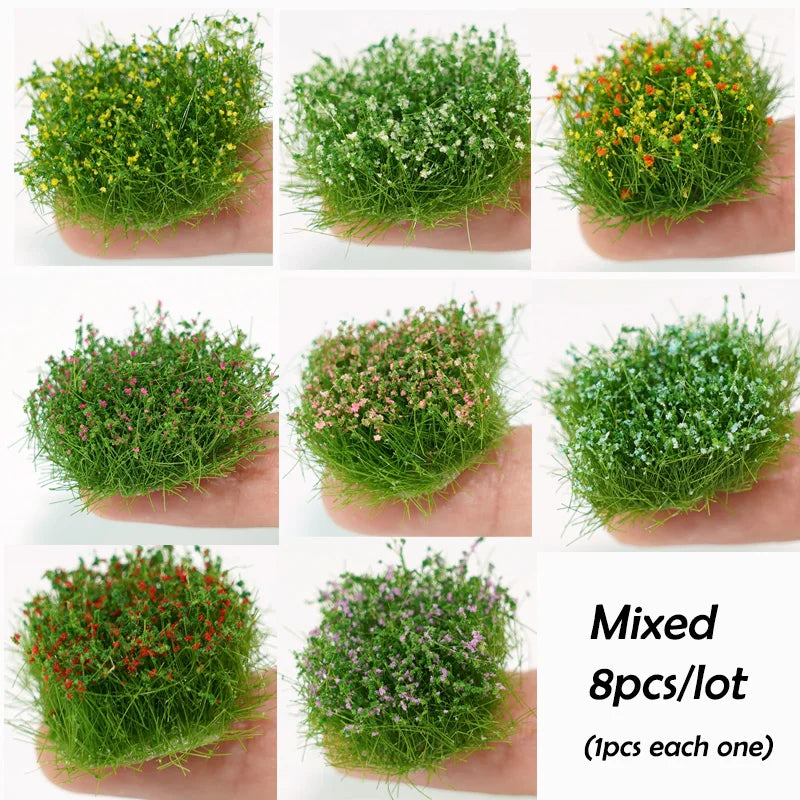 8pcs Mini Flower Clusters Diorama Accessories, Resin Plants for Model Layout, Dollhouse, Fairy Garden, Micro Scene Decor, and Craft Projects