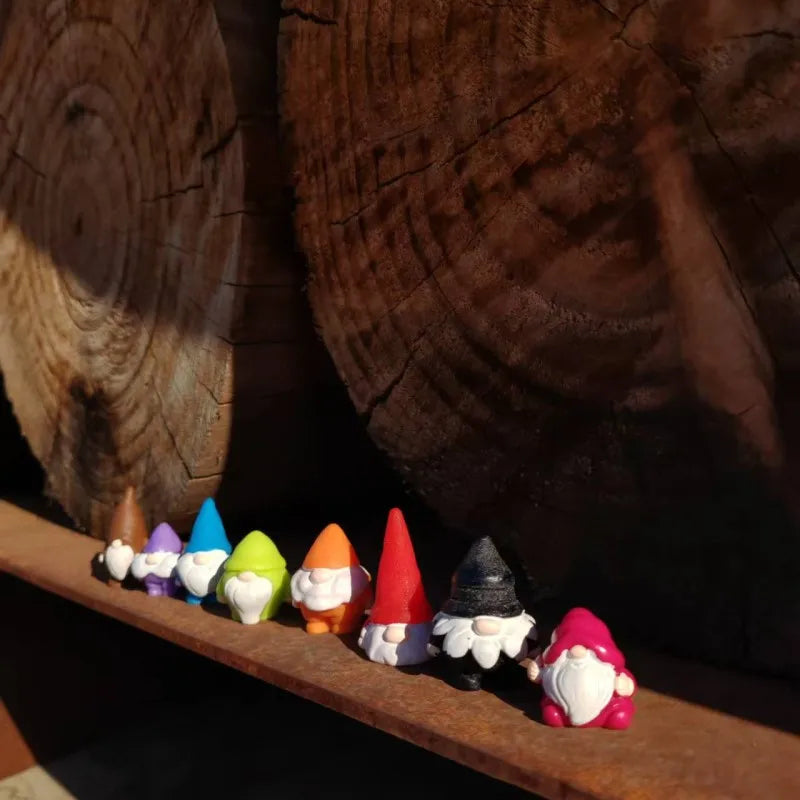 Made of durable, waterproof resin with smooth detailing and a glossy finish. These mini dwarves stay bright and charming indoors or outdoors — ideal for crafters, collectors.