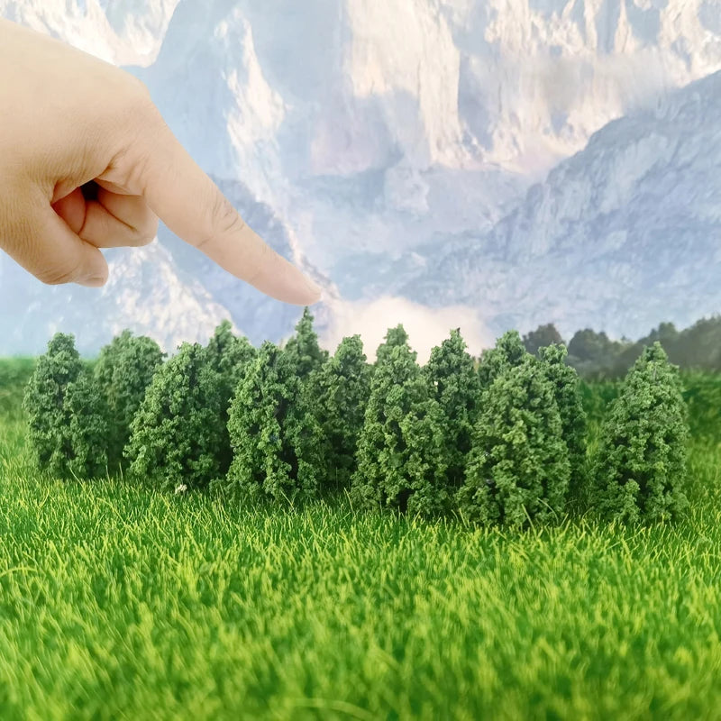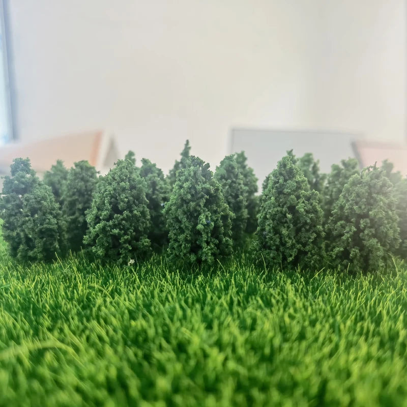 Create realistic landscape scenes with this set of 50 miniature green trees. Perfect for diorama projects, railway layouts, dollhouse displays, and architectural models.